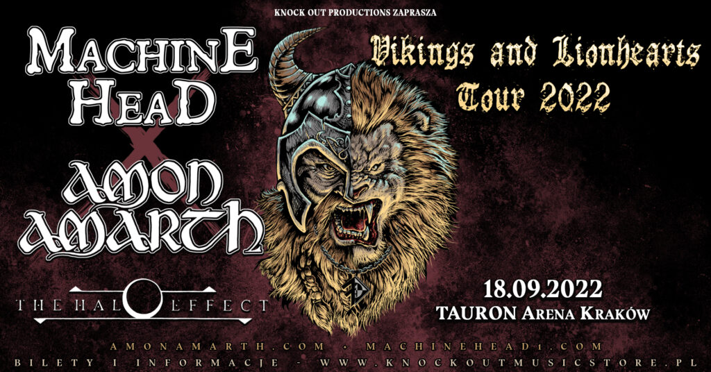 Machine Head oraz Amon Amarth wystąpią w Polsce 18 września 2022 roku, w krakowskiej TAURON Arenie. Potężny skład „Vikings and Lionhearts Tour” uzupełni support: The Halo Effect, czyli rozwijający się projekt byłych muzyków grupy In Flames.